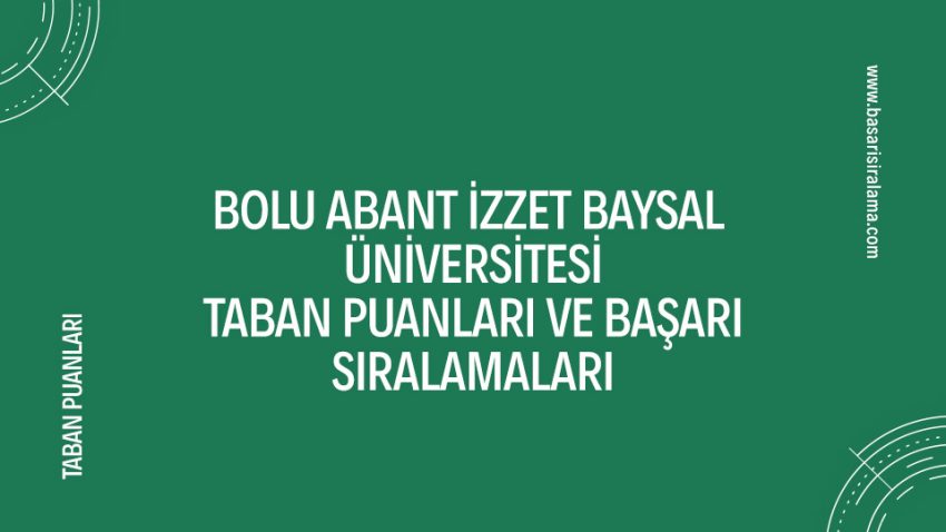 YÖK Atlas ve ÖSYM tarafından paylaşılan verilere göre, Bolu Abant İzzet Baysal Üniversitesi’nde 4 yıllık lisans programlarına yerleşmek için belirlenen en düşük bölüm taban puanı 347,98178, en yüksek bölüm taban puan ise 479,19182’dir. Başarı sıralaması en düşük bölüm 48.013, en yüksek bölüm 20.156 olarak açıklanmıştır. Adaylar, tercih sürecinde bu verileri dikkate alarak kararlarını şekillendirebilir.